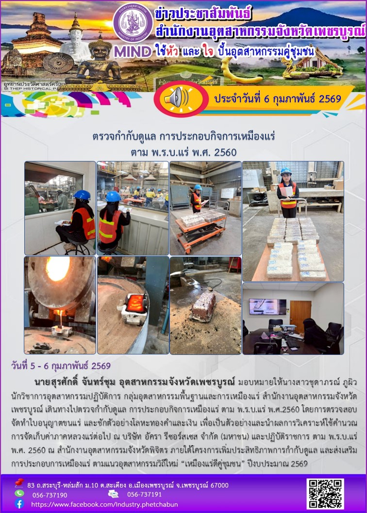 ตรวจกำกับดูแล การประกอบกิจการเหมืองแร่ตาม พ.ร.บ แร่ พ.ศ. 2560