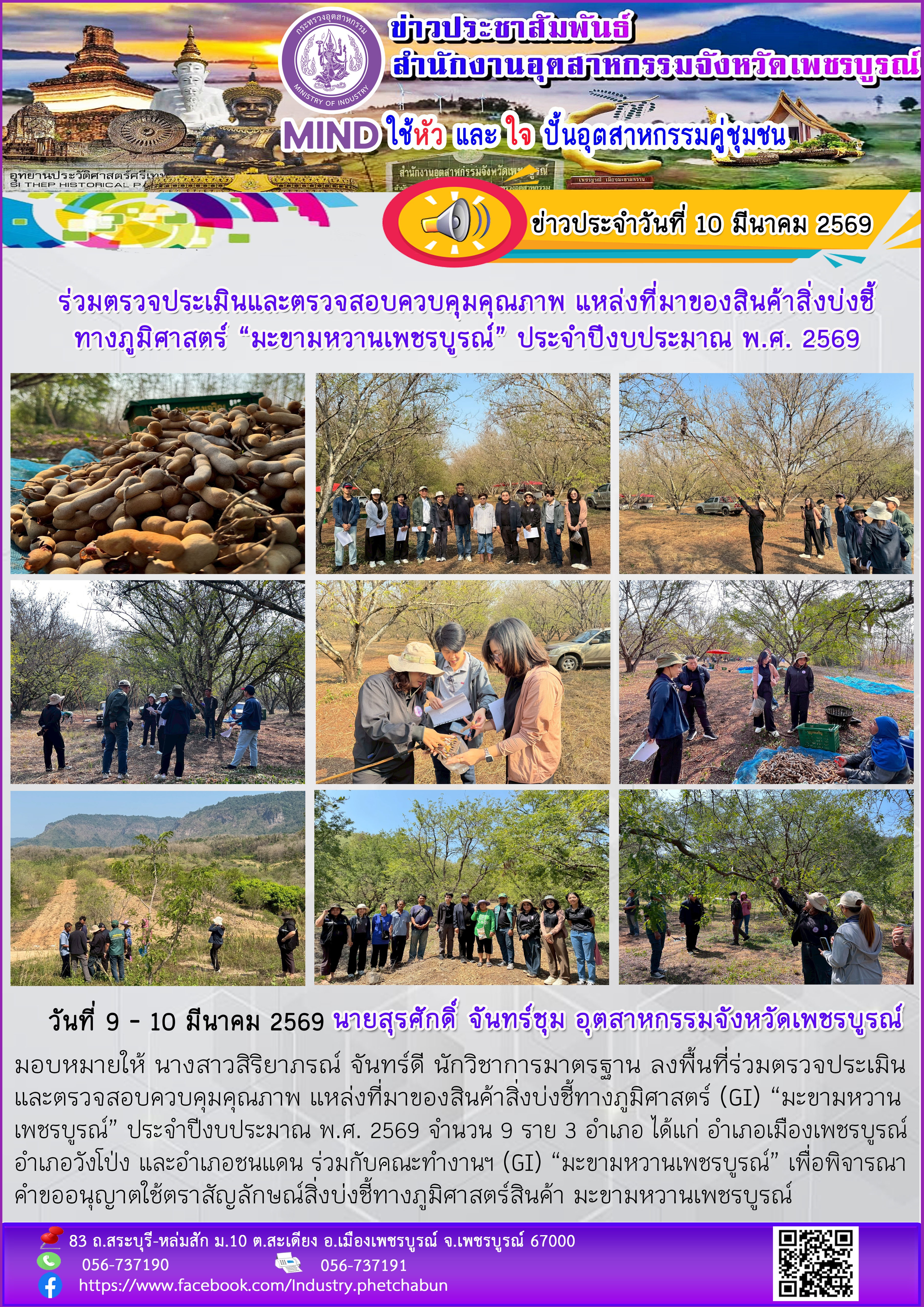 ร่วมตรวจประเมินและตรวจสอบควบคุมคุณภาพ แหล่งที่มาของสินค้าสิ่งบ่งชี้ทางภูมิศาสตร์ มะขามหวาน ประจำปีงบประมาณ พ.ศ. 2569