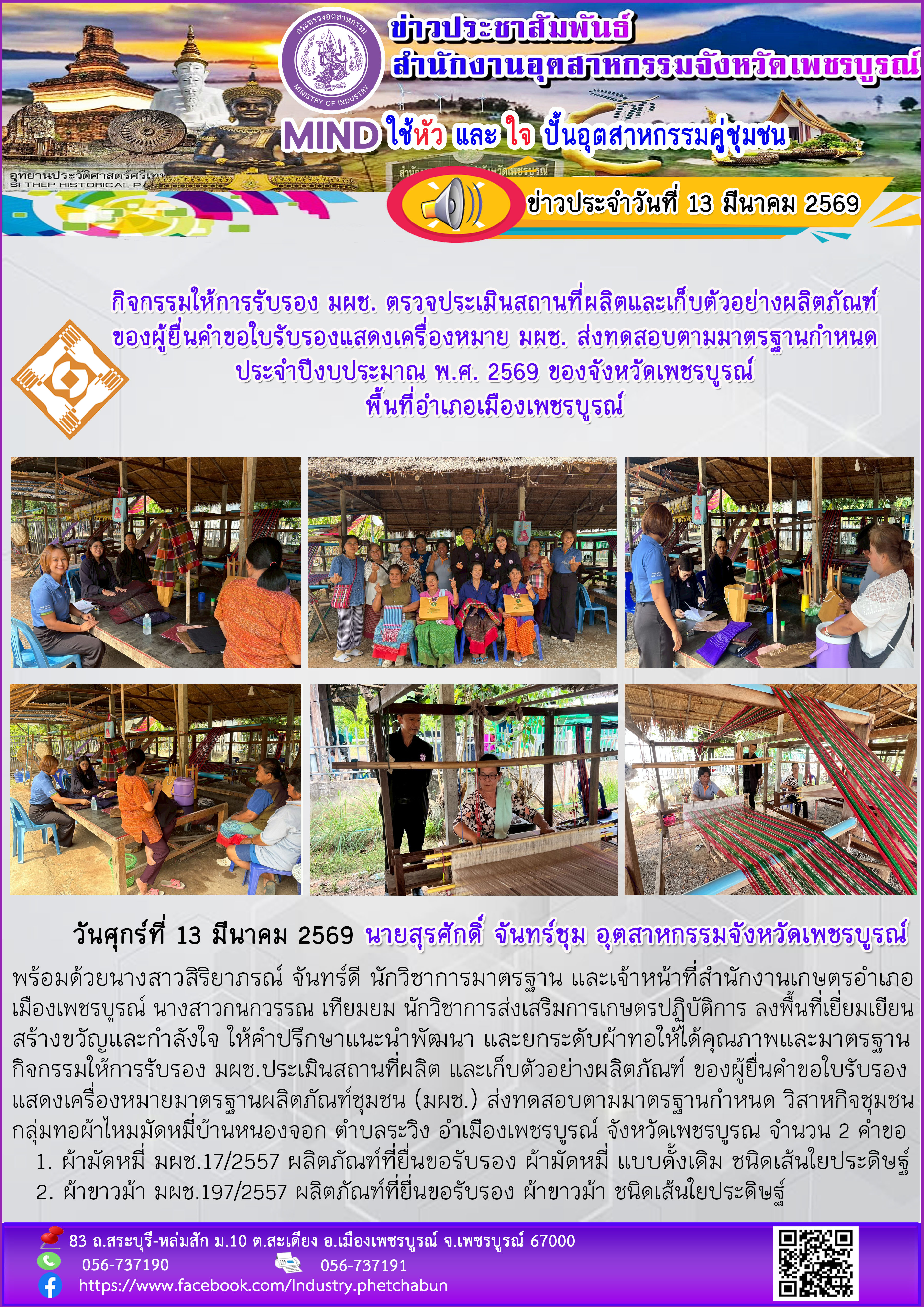 กิจกรรมให้การรับรอง มผช ตรวจประเมินสถานที่ผลิตและเก็บตัวอย่างผลิตภัณฑ์ของผู้ยื่นคำขอใบรับรองแสดงเครื่องหมาย มผช